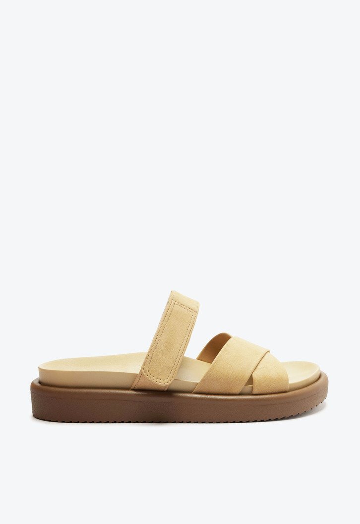 Essa sandália feminina combina conforto e estilo em um design moderno e versátil. Confeccionada em material sintético de alta qualidade, possui tiras largas cruzadas na parte frontal que proporcionam ajuste firme e elegante aos pés. A alça superior com fechamento em velcro garante praticidade ao calçar e estabilidade durante o uso. Com palmilha anatômica e solado emborrachado, é ideal para o dia a dia, oferecendo bem-estar em cada passo. Perfeita para compor looks casuais com leveza e sofisticação.
