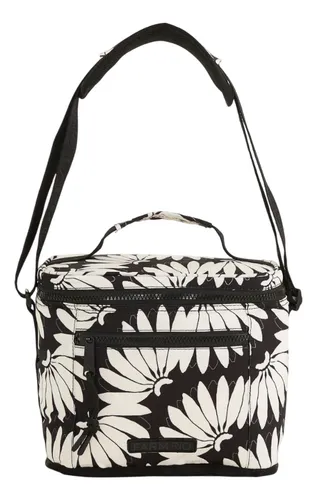 O Mini Cooler Farm Farofa Copabanana une praticidade e estilo tropical em um design elegante preto e branco com estampa de folhas e bananas. Ideal para levar bebidas e lanches sempre frescos, é compacto e fácil de transportar, contando com alça de mão e alça longa ajustável para maior conforto. Possui bolso frontal funcional e fechamento em zíper no compartimento principal, perfeito para passeios na praia, piqueniques ou momentos ao ar livre com muito charme.