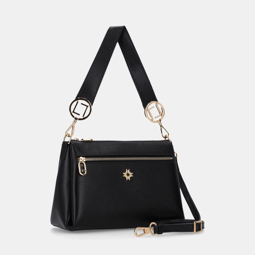 A Bolsa Tiracolo Luz da Lua New Ridge na cor Preto é a combinação perfeita de estilo e funcionalidade. Feita em couro legítimo, o modelo apresenta design contemporâneo com acabamento sofisticado e metais dourados que trazem um toque de elegância. Conta com alça larga removível e alça longa ajustável, permitindo diferentes formas de uso. Com fechamento em zíper e ótimo espaço interno, é ideal para acompanhar produções do dia a dia com charme e praticidade.