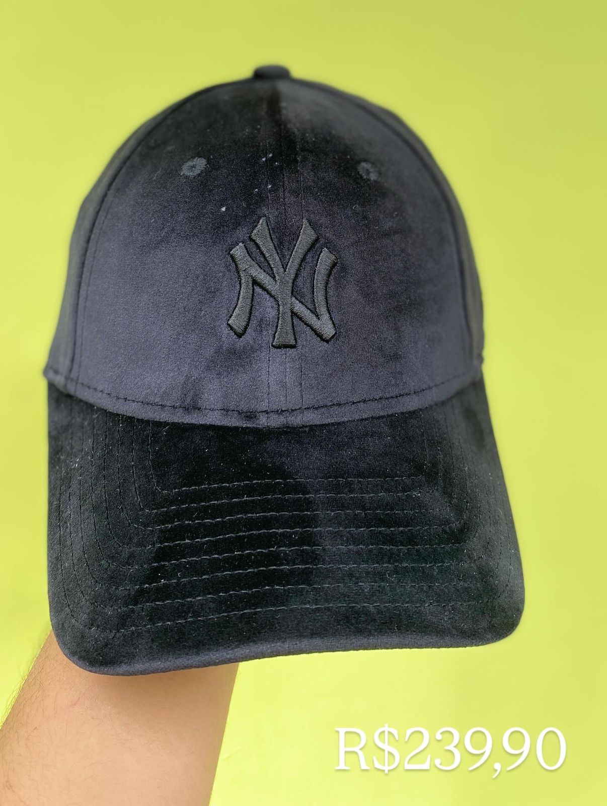 Boné estilo dad hat na cor preta com acabamento aveludado, oferecendo um visual sofisticado e urbano. Possui o icônico logo dos New York Yankees bordado na parte frontal em alto relevo, tom sobre tom, garantindo discrição e elegância. Confeccionado em material macio e confortável, ideal para compor looks casuais ou streetwear. Ajuste traseiro em fivela para melhor adaptação ao tamanho da cabeça. Um acessório versátil e atemporal para quem busca estilo e autenticidade.
