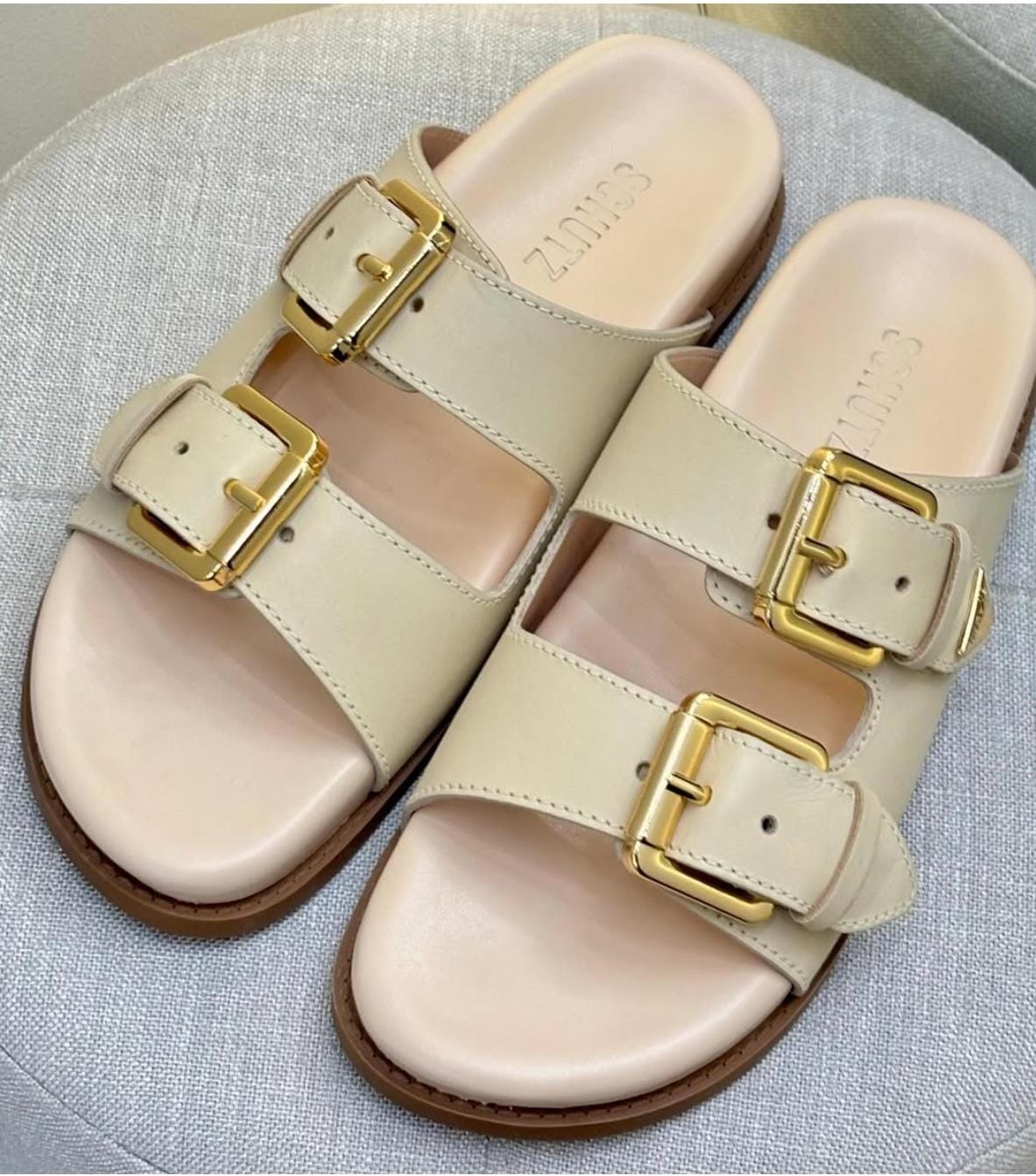 Essa sandália feminina une elegância e praticidade em um design atemporal. Com duas tiras largas na cor bege e fivelas douradas ajustáveis, ela proporciona um encaixe confortável e seguro. O solado flat garante estabilidade, enquanto o acabamento interno acolchoado oferece bem-estar para o uso prolongado. Ideal para compor looks casuais com estilo.
