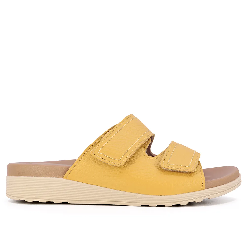 Tamanco salto plataforma com cabedal em couro relax catalano na cor sunset. O modelo possui tecnologia Calce Fácil, com modelagem in teligente em adaptar o calçado a ergonomia dos pés.