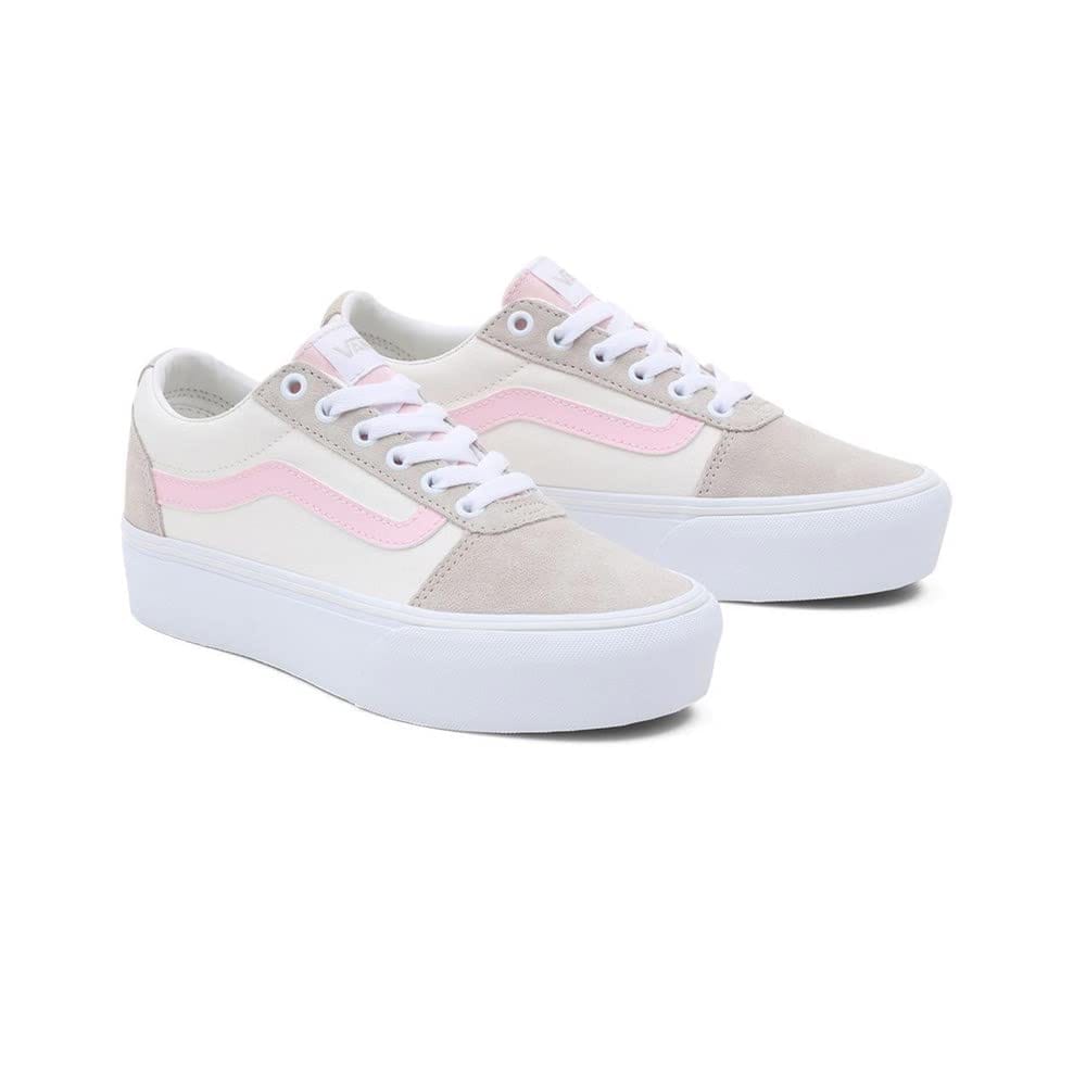 O Vans Old Skool Platform em tons neutros e detalhe rosa claro é a combinação perfeita entre delicadeza e estilo urbano. Com cabedal em lona branca e camurça bege claro, o modelo ganha destaque com a clássica Sidestripe em rosa suave. O solado plataforma garante um visual moderno e elevado, enquanto o icônico padrão Waffle proporciona aderência e conforto. Ideal para compor looks casuais com um toque feminino e descolado.